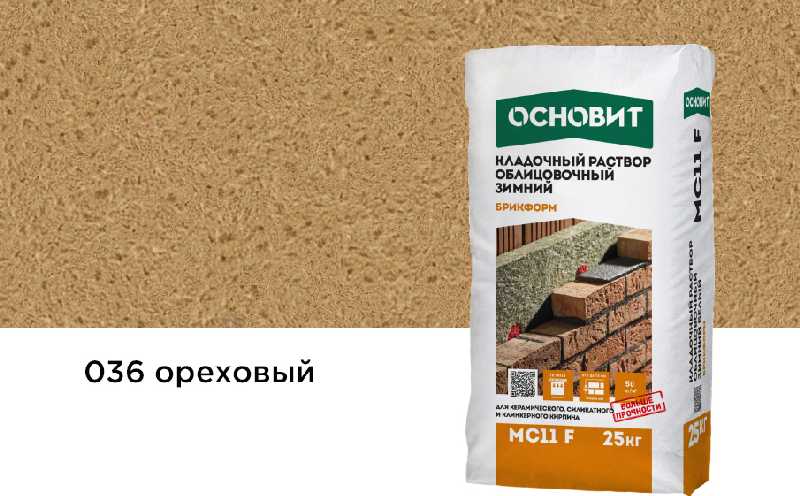 Кладочный раствор ОСНОВИТ БРИКФОРМ МС11 F зимний предназначен для кладки стен из облицовочного кирпича с водопоглощением до 12% с возможностью расшивки швов в момент укладки при температуре окружающей среды и основания от -10 до + 10°С.